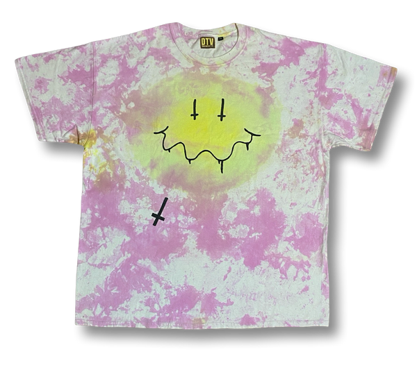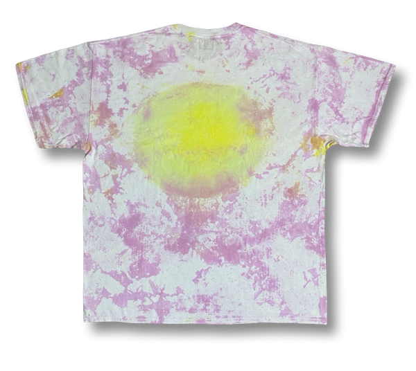 Each t-shirt is hand dyed and hand painted over several days, creating a pattern and graphic that is unique to your t-shirt. Some t-shirts share a colour scheme however the exact design of your shirt will belong only to you. Painted with care by Du Blonde in her bedroom to a sound track of AC/DC, Cat Stevens and Big Star.