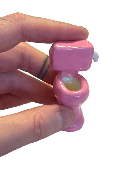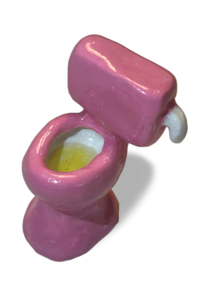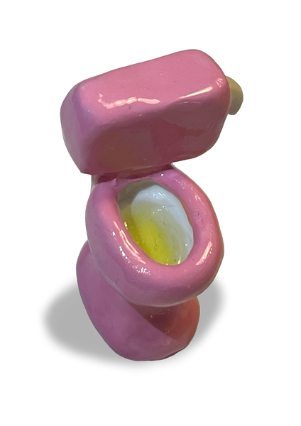 'Toilet One' Miniature SculptureOriginal ArtworkPart of the Du Blonde 'Pee Pee Poo Poo' SeriesMulti-media - Clay, Acrylic paint, Mica Powder and Resin4.5cm x 2.8cmSigned by ArtistYear - 2025